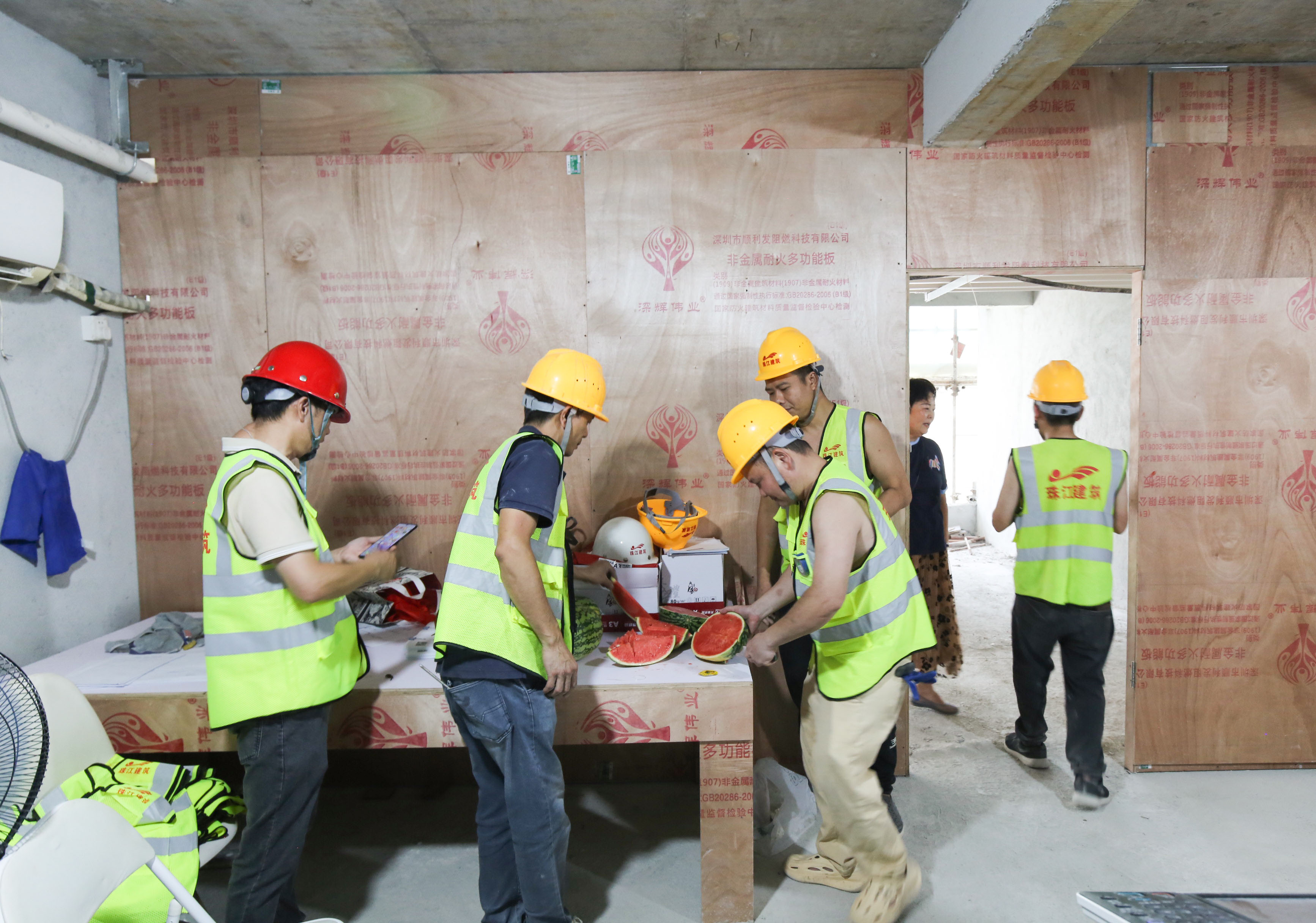 入伏以来,酷暑难耐,面对滚滚热浪,公司各在建项目的一线职工始终鏖战在钢筋水泥之间,用汗水丈量进度,用坚守诠释担当。为切实做好高温季节防暑降温工作,保障高温岗位职工健康安全,公司工会慰问组近日开展高温慰问活动,带着西瓜、藿香正气水、清凉饮品等防暑降温物资前往前往健力宝华南运营总部、乐比健康生物医药企业总部及产品研发生产基地、沙湾金寺围二期项目精装修工程、三联“新水河”地段项目外立面工程等项目。
